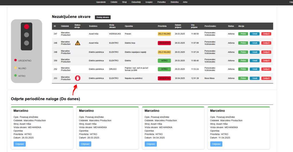The importance of faults or tasks (urgent, emergency, fast) is already indicated by the colours of the traffic lights.